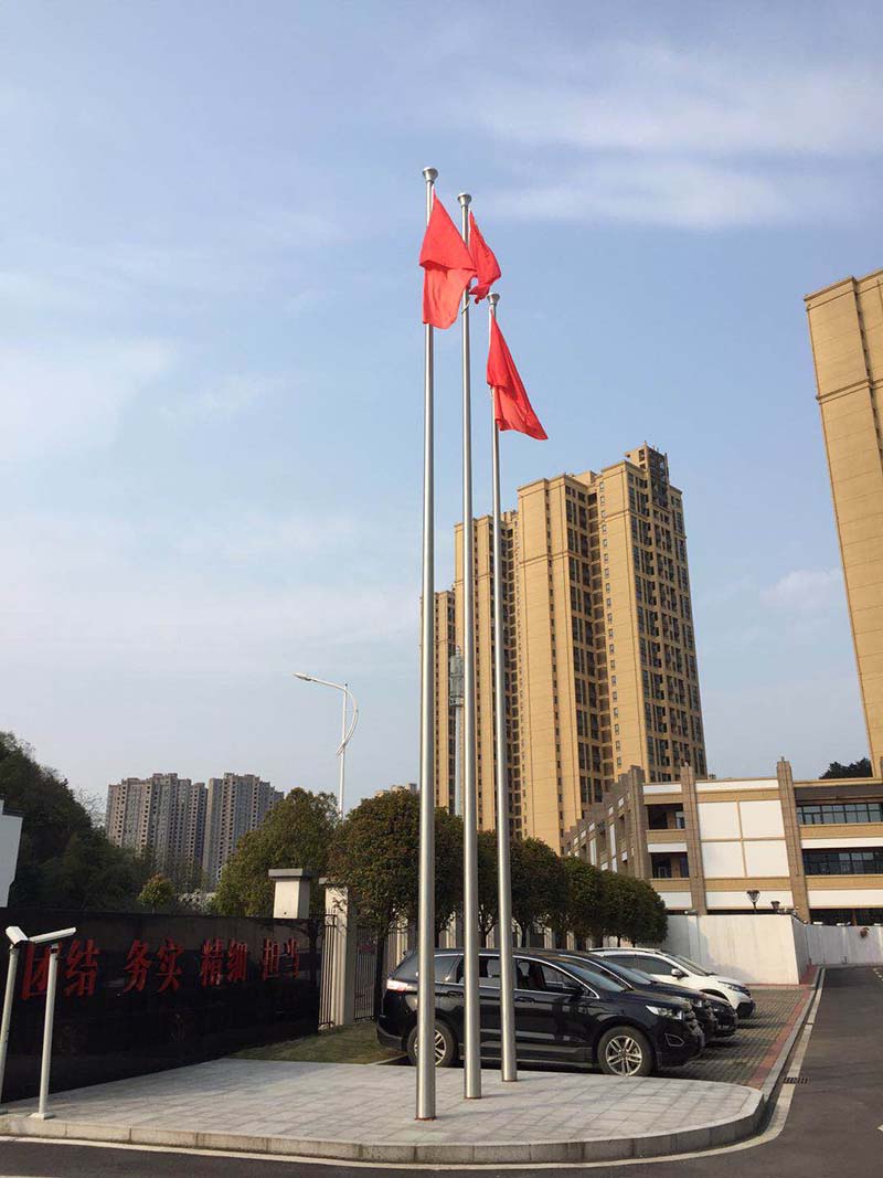 目前安装三根旗杆是公司,酒店,工厂,学校的主流选择,一般中间悬挂国旗并高出左右两边的旗帜0.5-1.2米,左右两边一般悬挂集团旗帜,校旗或班旗等,我司的三根电动升旗可以同升同降或分开升降并同步不同的音乐。