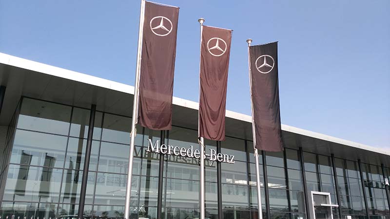 汽车4S店一般会悬挂3.2米左右高的刀旗,我司能为各品牌汽车4S店定制各种规格杆件以及各种解决方案。